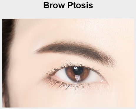 Brow ptosis narrows the distance between the eyes and the eyebrows and also causes the eyelids to droop. This condition can only be corrected by lifting the position of the brows through a forehead lift. If double eyelid surgery or ptosis correction is performed while brow ptosis is present, the eye–brow distance becomes even narrower and the upper eyelid appears bulkier, resulting in a harsher or more stern appearance.