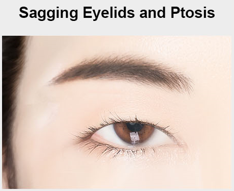 Both sagging eyelids (pseudoptosis) and true ptosis can cause the eyelids to cover much of the pupil, giving a tired appearance. These conditions can be corrected with double eyelid surgery or ptosis correction surgery.