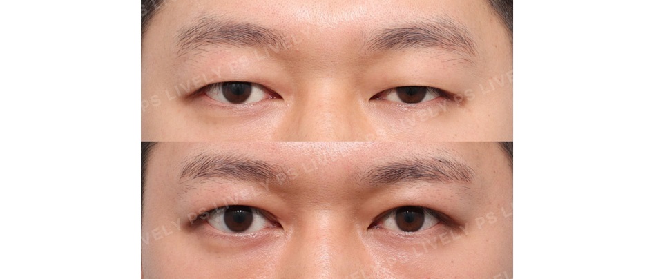 Double eyelid surgery & Ptosis correction, Correction of asymmetrical eyelids Before / 1 Month later Lively Plastic Surgery Clinic Korea
