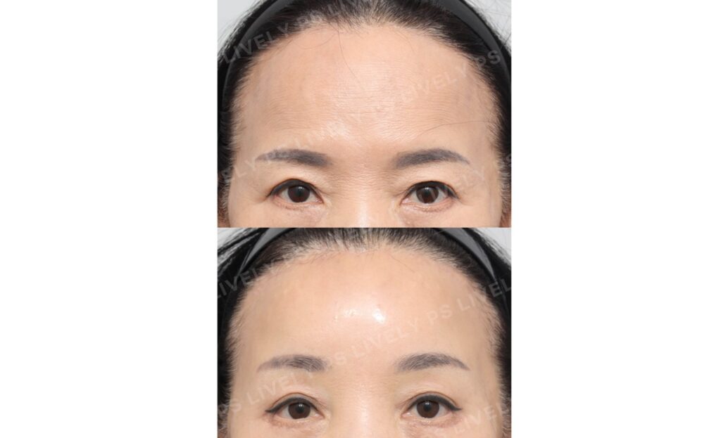Forehead lift with hairline lowering Before / 2 Months later Lively Plastic Surgery Clinic Korea